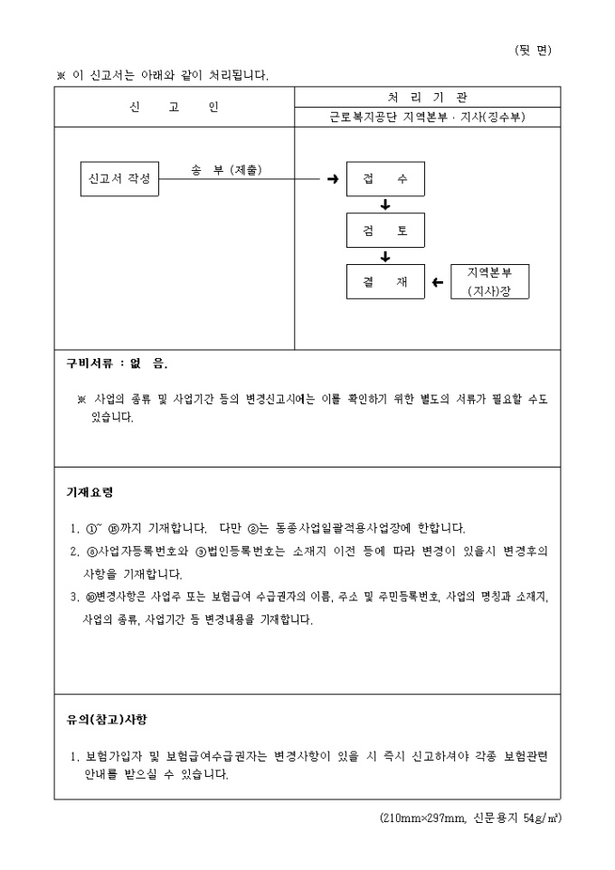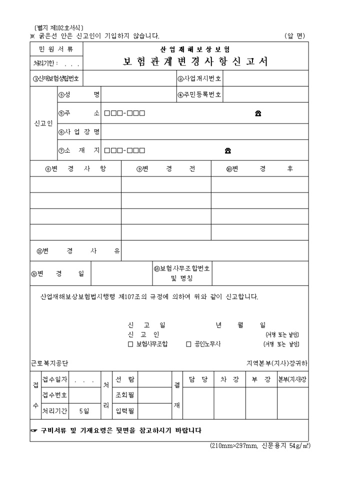 산업재해보상보험 보험관계변경사항신고서