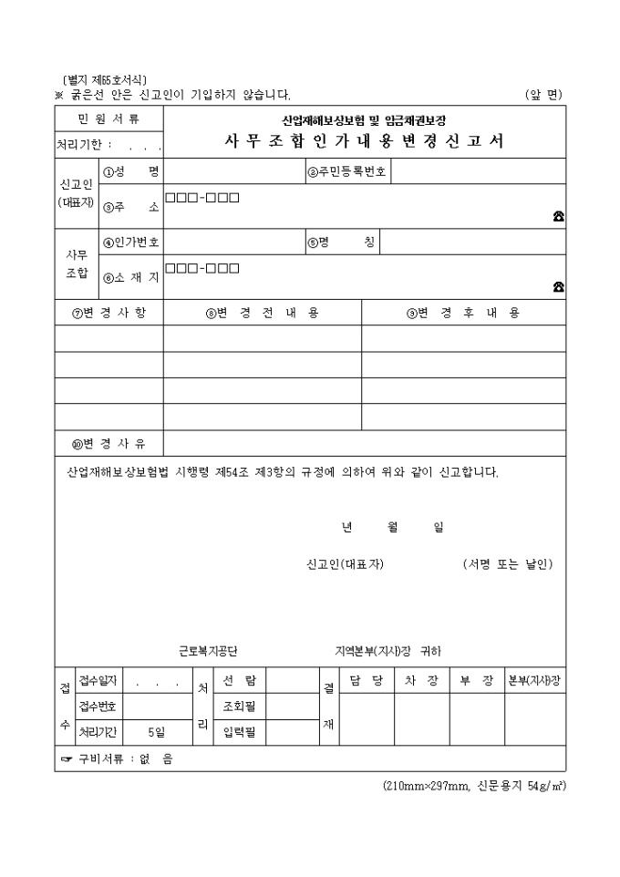 산업재해보상보험 및 임금채권보장사무조합인가내용변경신고서