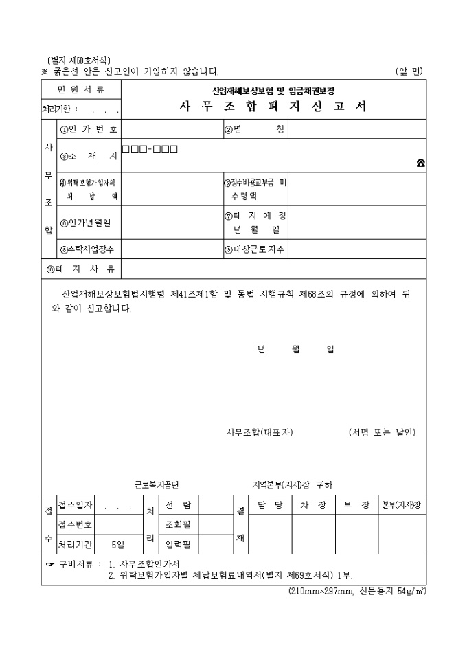 산업재해보상보험 및 임금채권보장사무조합폐지신고서