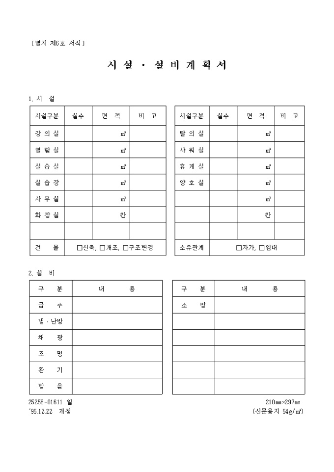 9,000원/월(학원조건부등록시)시설·설비계획서 양식입니다.