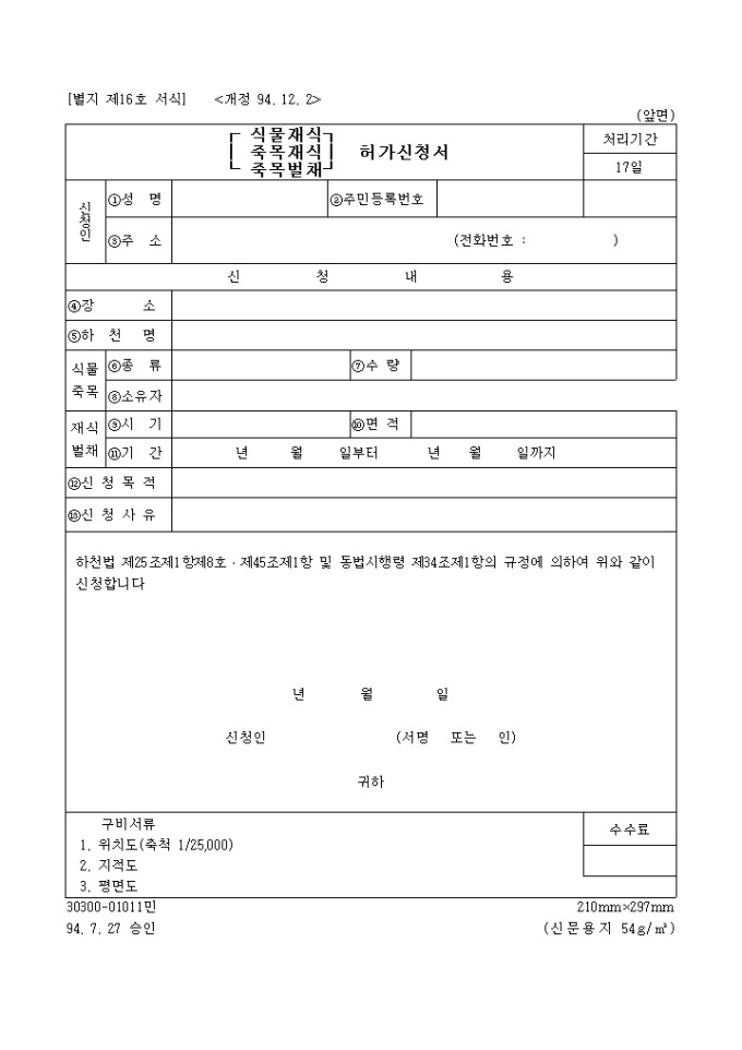(식물재식, 죽목재식, 죽목벌채)허가신청서