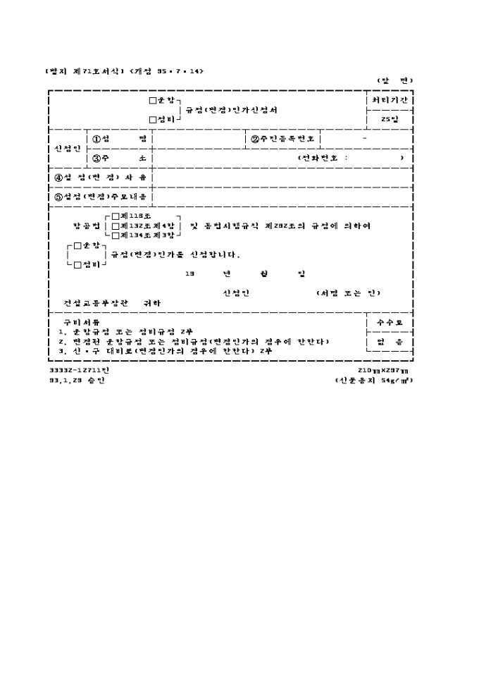 항공법 (제 116조, 제 132조 제4항, 제 134조 제3항) 및 동법시행규칙 제282조의 규정에 의하여 (운항, 정비) 규정(변경) 인가를 신청합니다.