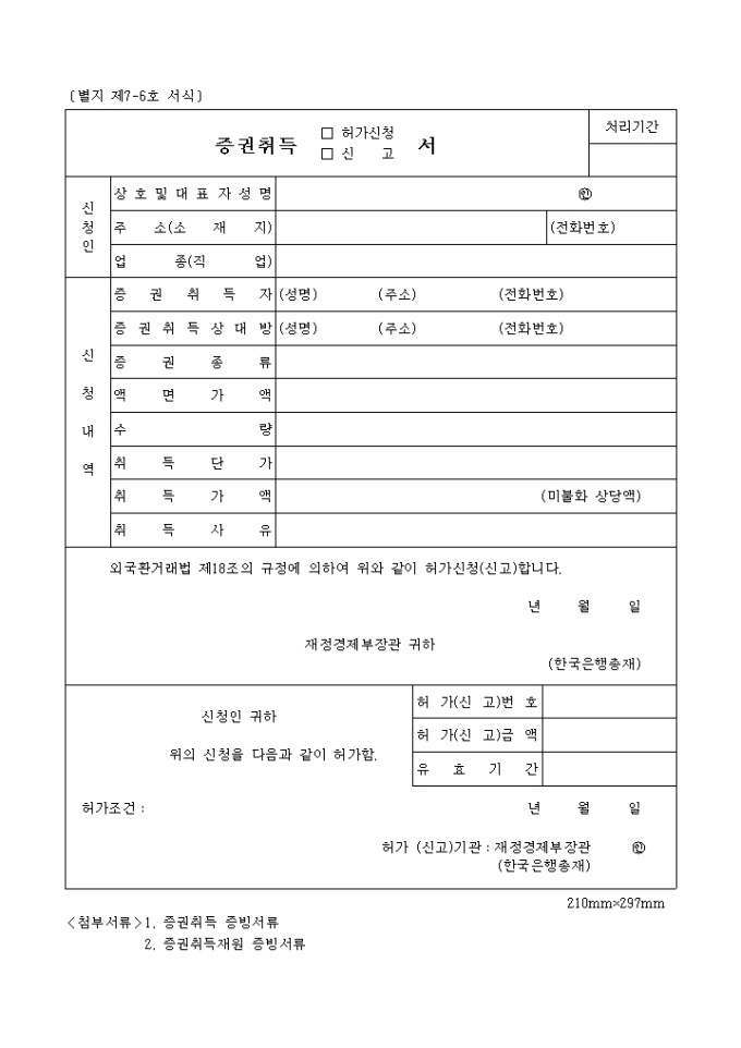 9,000원/월증권 취득 허가신청, 신고서 양식 예제입니다.