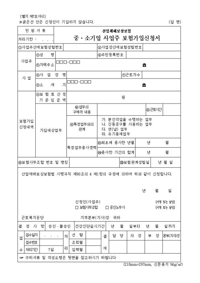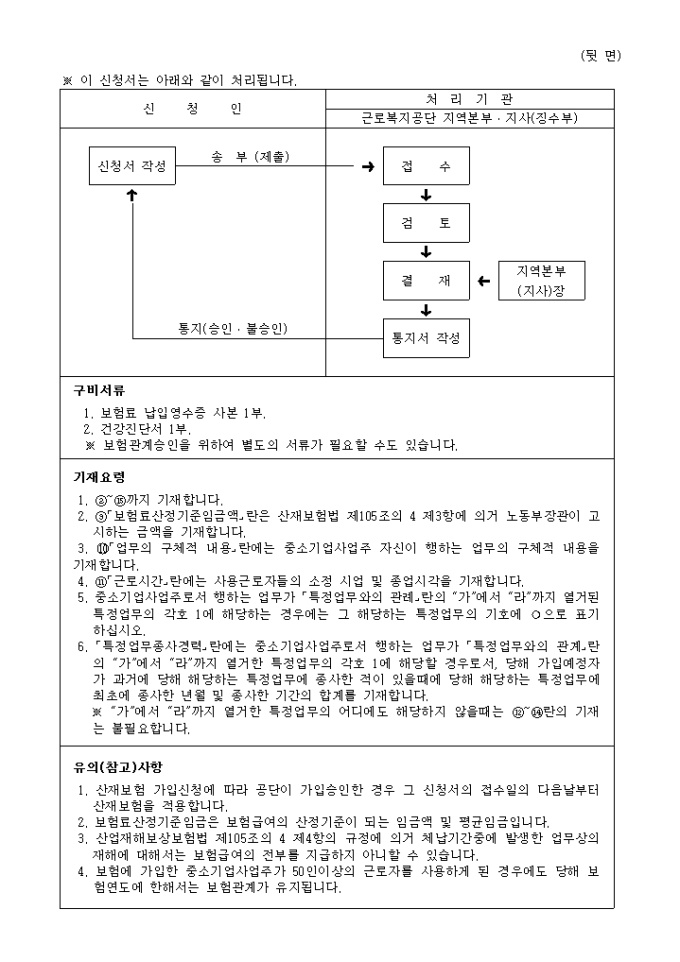 산업재해 보상보험 중소기업사업주 보험가입신청서