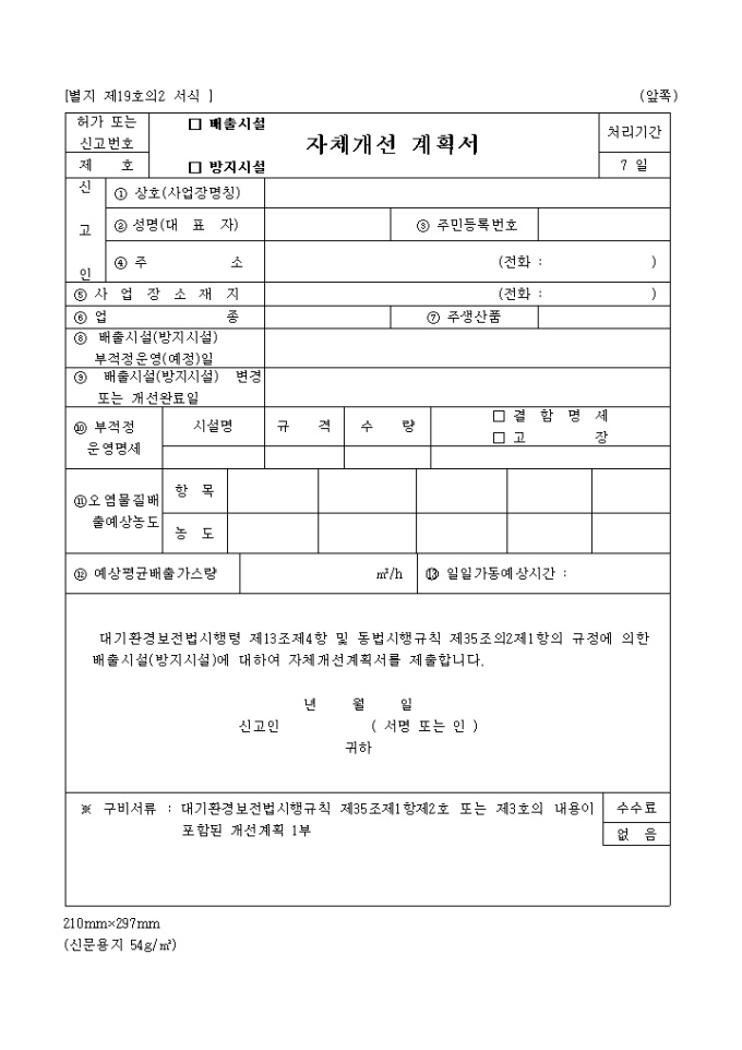 배출, 방시시설자체개선 계획서(별지 제19의2호 서식)