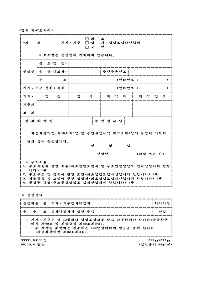 기계·기구(최초, 정기, 구변)정밀도검사신청서
