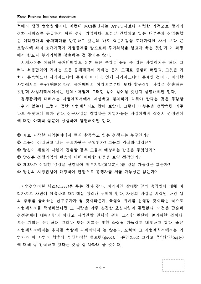 9,000원/월훌륭한 사업계획서를 작성하는 방법 열거해 놓은 양식입니다.