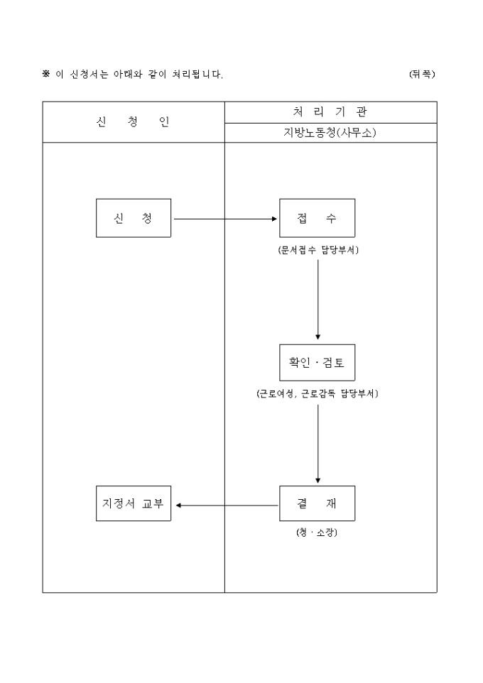 남녀고용평등법 제13조제2항 및 동법시행규칙 제7조제1항의 규정에 의하여 위와 같이 직장내 성희롱 예방교육기관 지정을 신청하고자 할 때 사용하는 "직장내 성희롱 예방교육기관 지정신청서" 양식입니다.