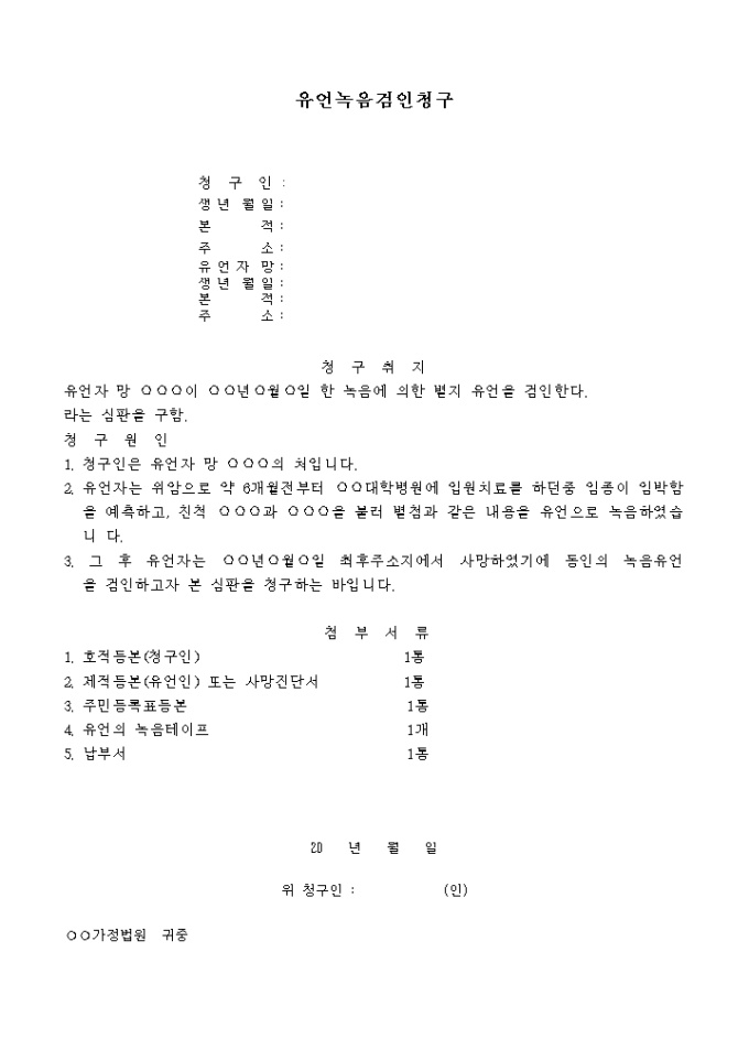 유언녹음 검인청구서