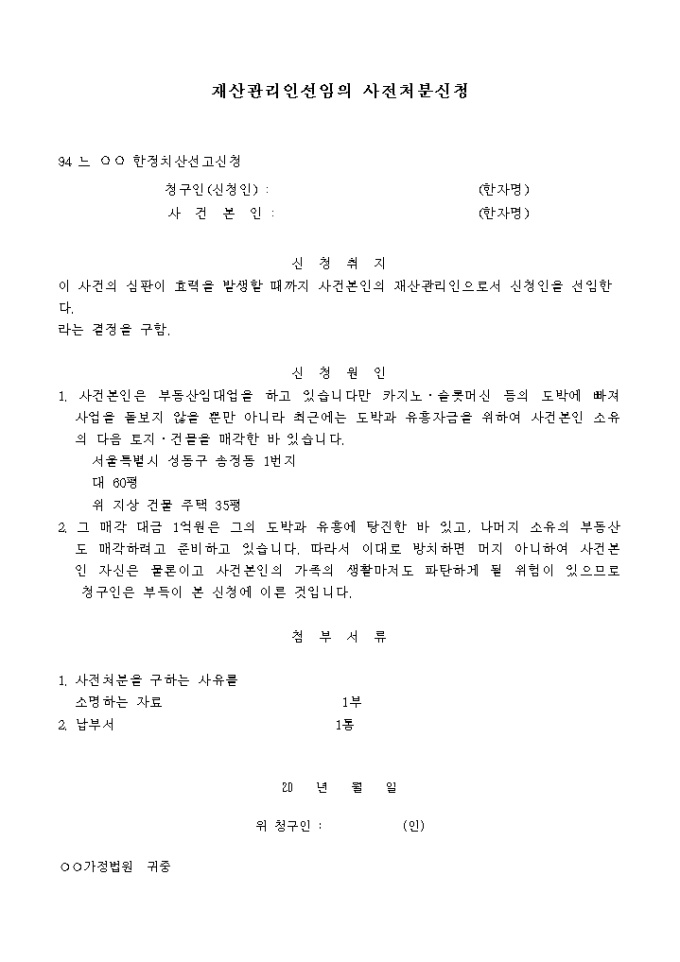 사전처분의 신청서