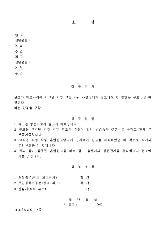9,000원/월인적착오로 신고한 경우 사용하는 소장 양식입니다.
