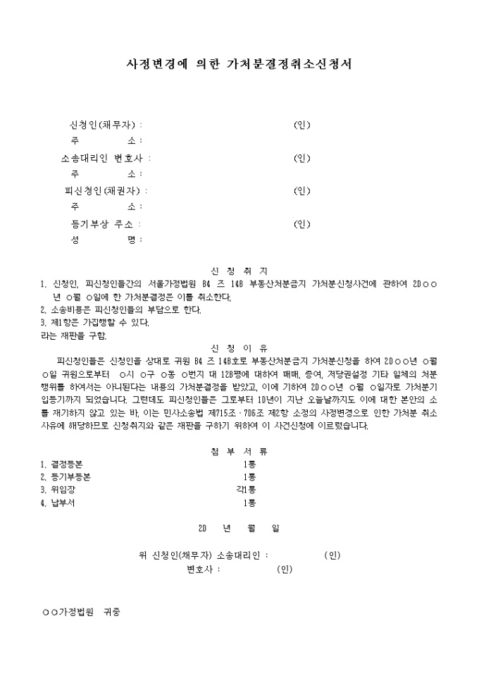 사정변경에 의한 가처분결정취소신청서