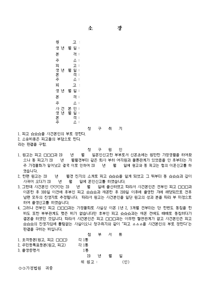 # 부의 결정의 소 # 협의이혼 # 가정법원 제출 소 # 소장 작성방법 # 소장 예시