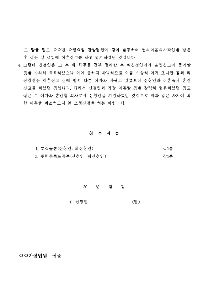 이혼취소 조정신청서
