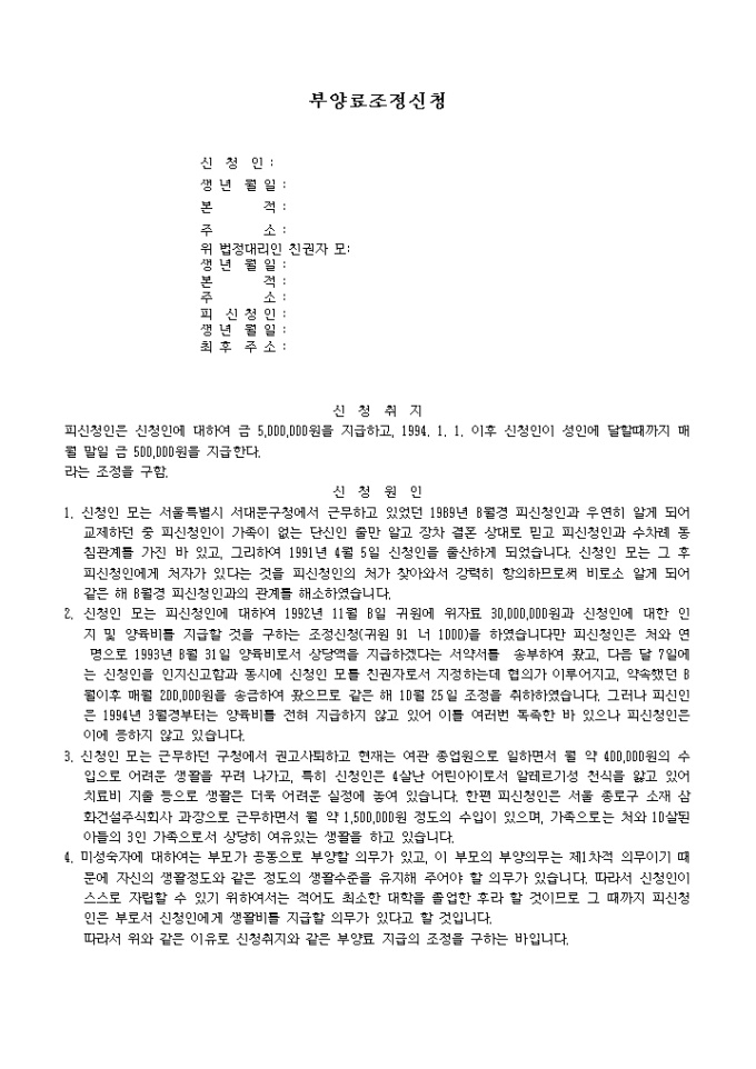 부양료 조정신청서