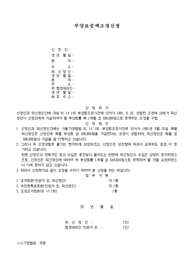 부양료증액 조정신청서