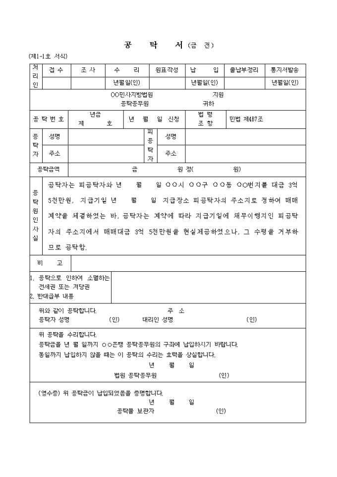 매도인이매매대금의수령을거부하는경우의 공탁서