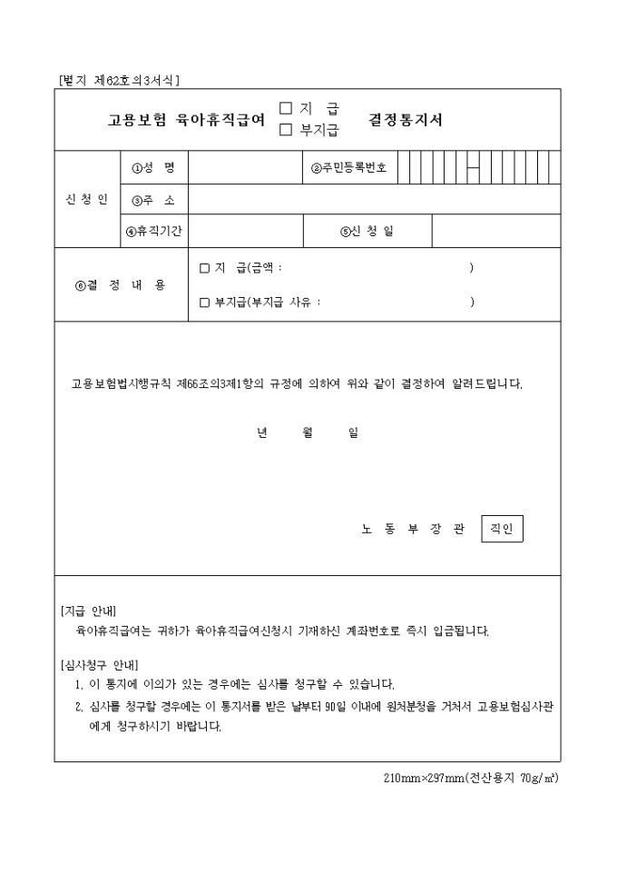 고용보험 육아휴직급여지급, 부지급결정통지서
