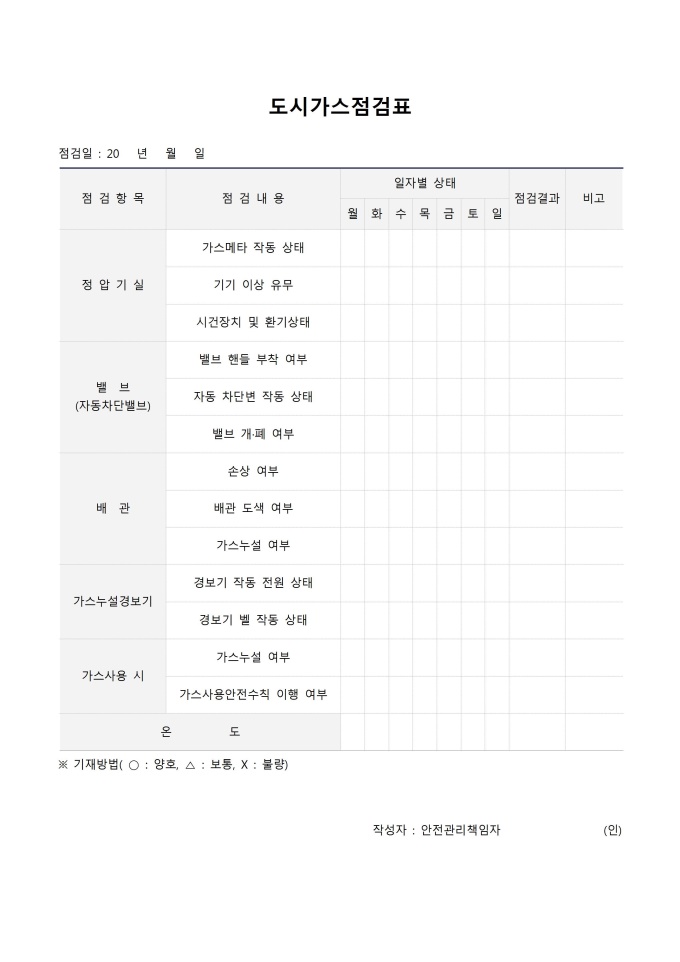 도시가스점검표