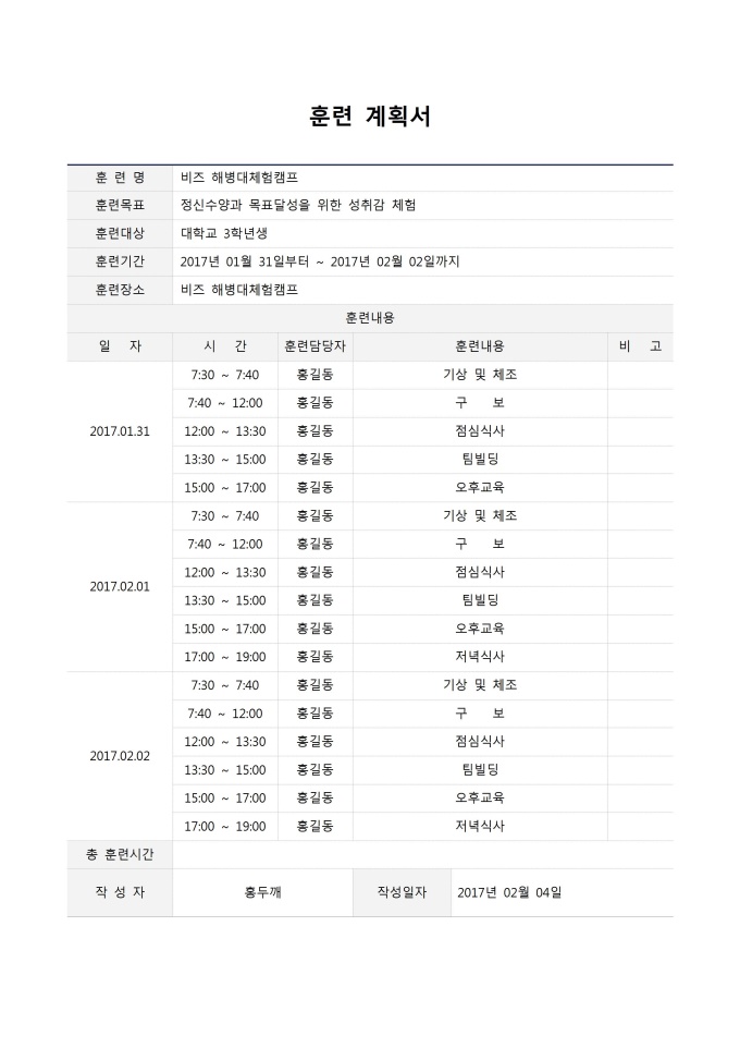 훈련계획서