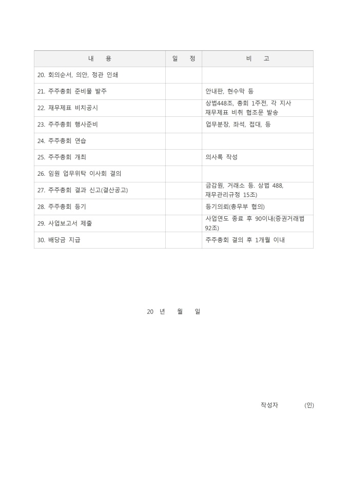 주주총회 상세일정계획