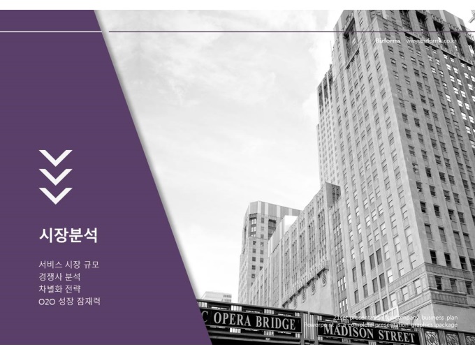 내용은 사업의 비즈니스 모델과 함께 주요서비스 안내, 시장분석 및 경쟁사 분석, 향후 사업계획으로 구분되어져