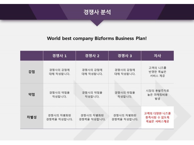 상황분석을 통한 계획수립이 가능한 사업계획서입니다.