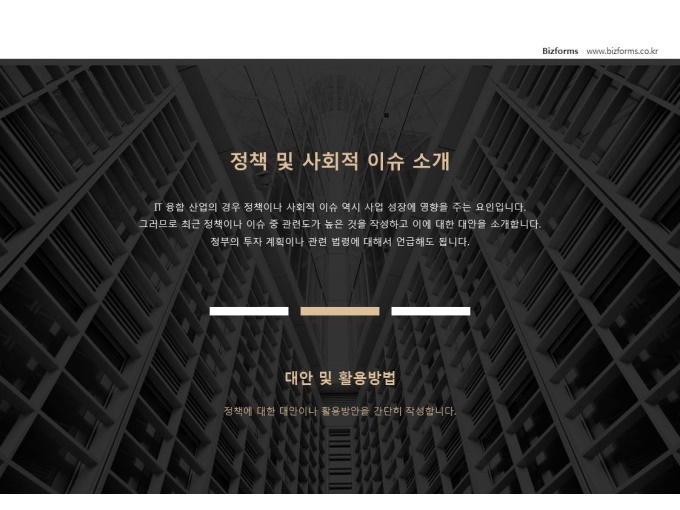 그러므로 최근 정책이나 이슈 중 관련도가 높은 것을 작성하고 이에 대한 대안을 소개합니다. 정부의 투자 계획이나 관련 법령에 대해서 언급해도 됩니다. 관련 업종의 사업계획서 작성시 목차와 구성, 실제 샘플을 참고하여 작성할 수 있습니다.