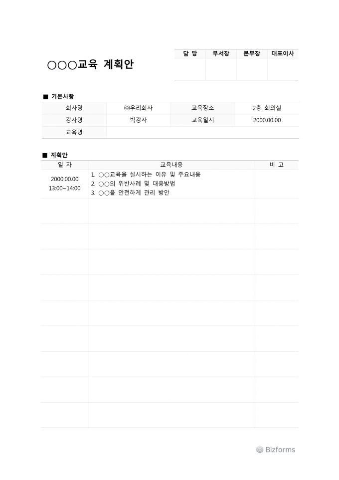 9,000원/월교육을 계획할때 간단한 기본사항을 기재하고 계획안을 작성하여 교육을 진행을 하기 전 단계에서 사용할 수 있습니다.