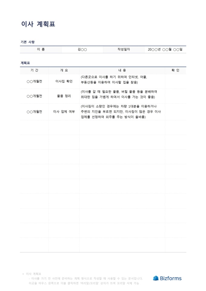 이사 계획표