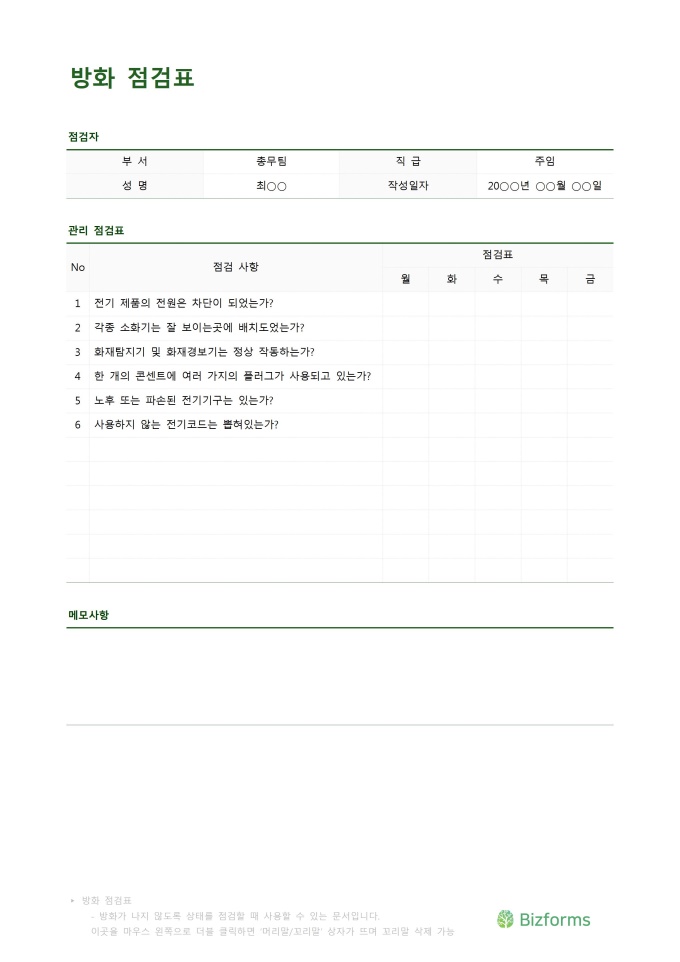 부득이하게 방화가 발생하지 않도록 전기 및 제품들을 점검할때 사용할 수 있는 문서입니다.