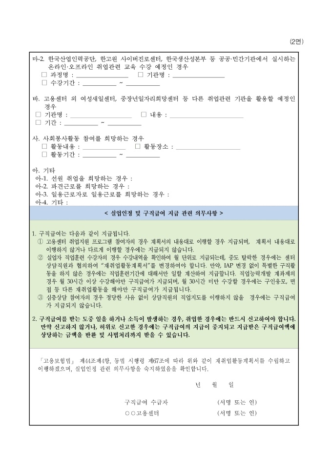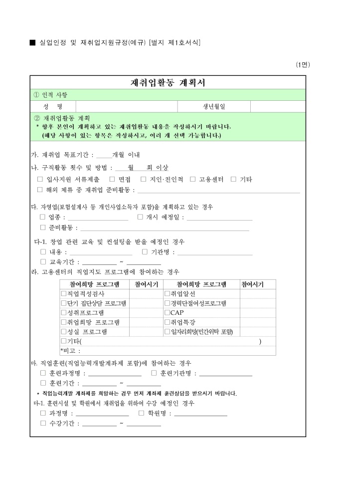 재취업활동 계획서