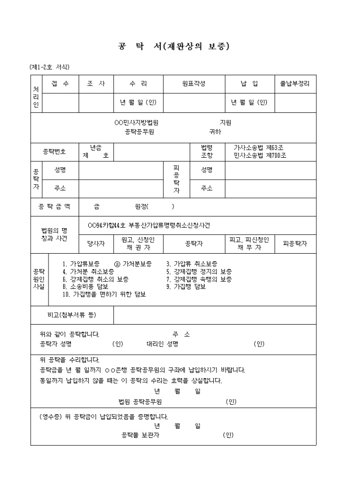 가사사건과관련된가압류보증공탁서 입니다.