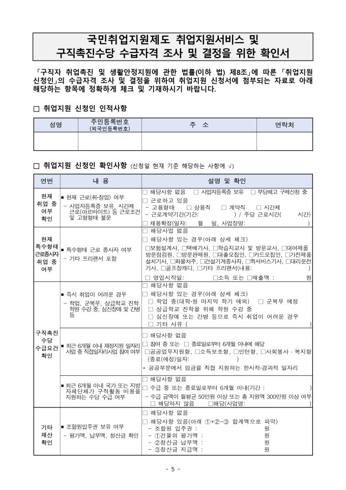 국민취업지원제도 서비스 서식 모음(취업지원 신청서)