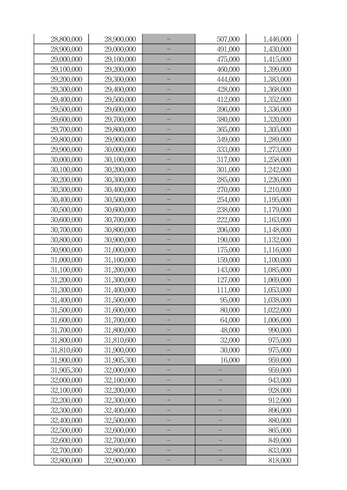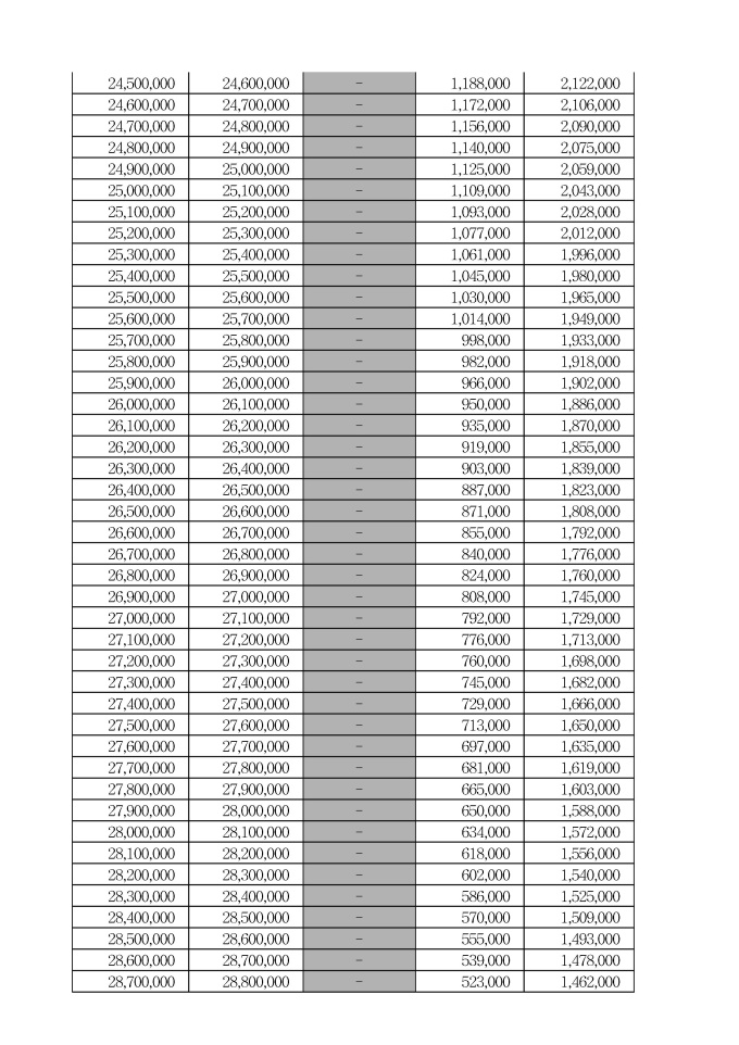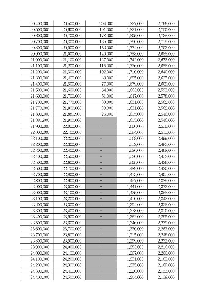 총급여액 및 가구원 구성에 따른 근로장려금 산정표입니다.