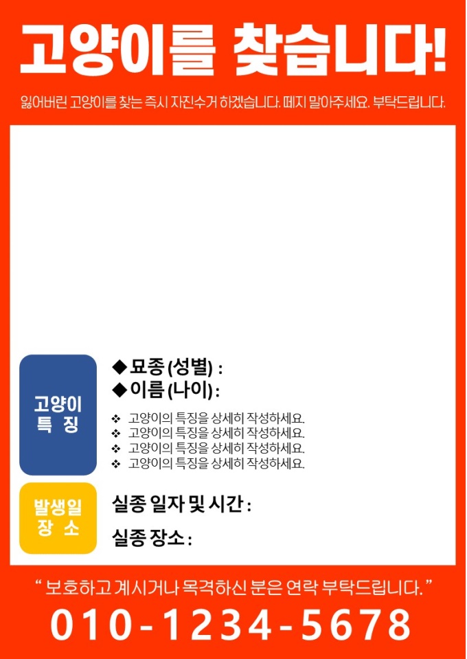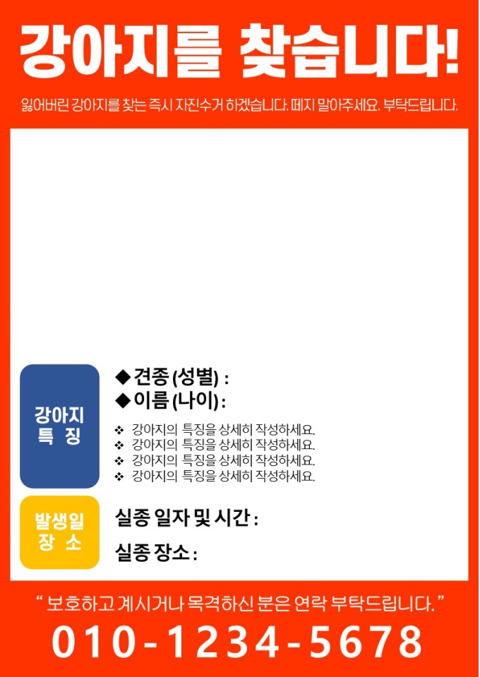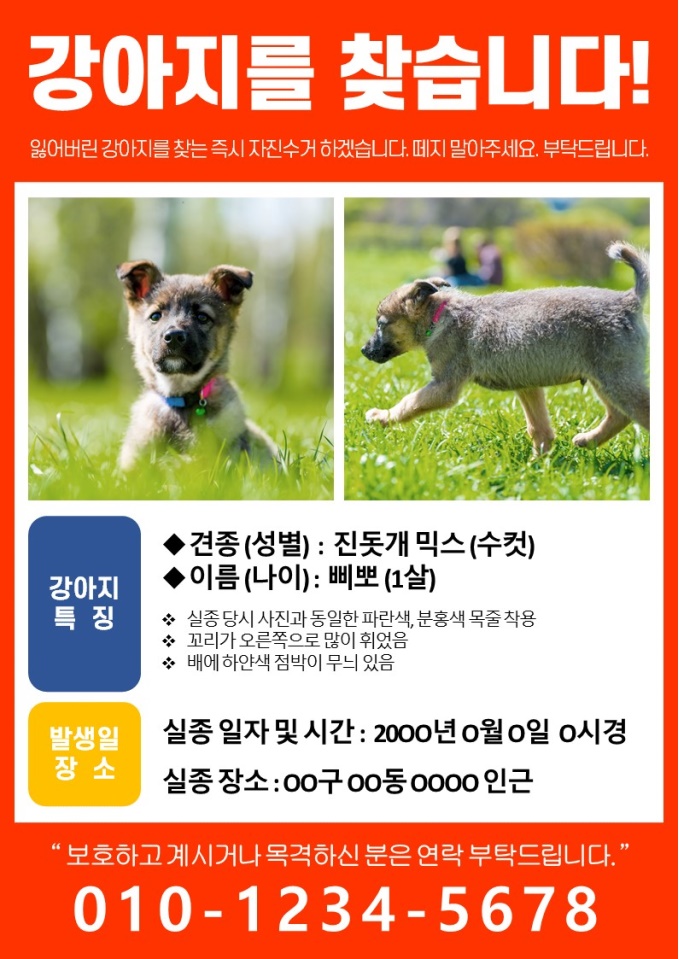 반려동물 실종 전단지 (강아지, 고양이, 사진 2장 삽입)