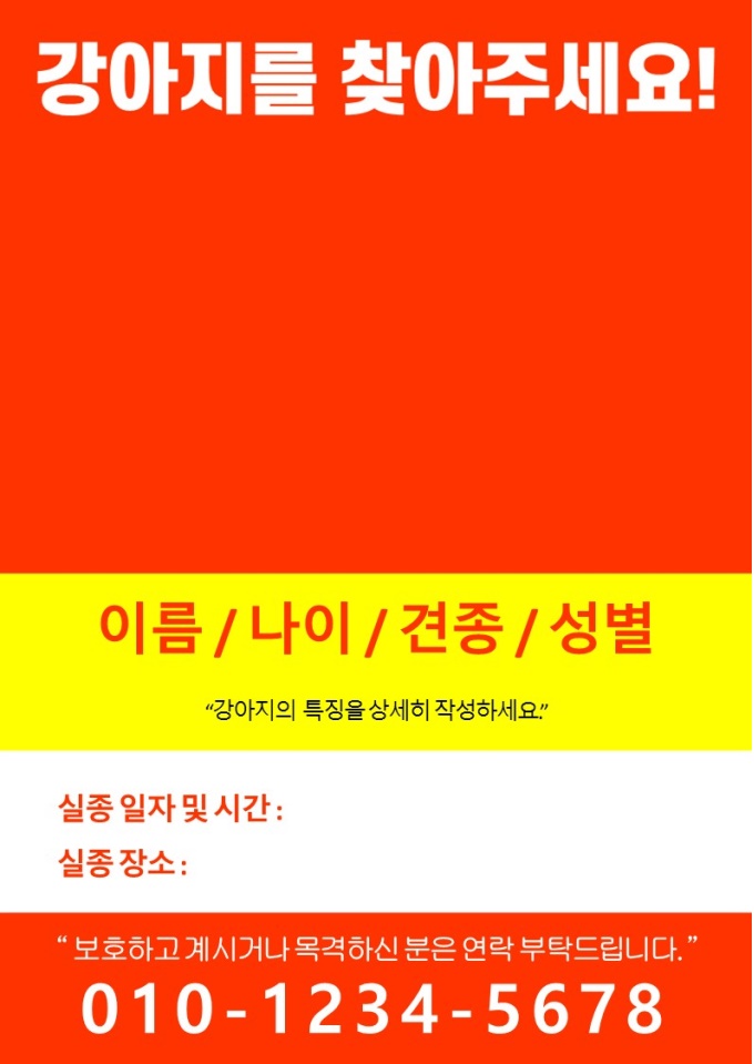 반려동물 실종 전단지 (강아지, 고양이, 사진 3장 삽입)