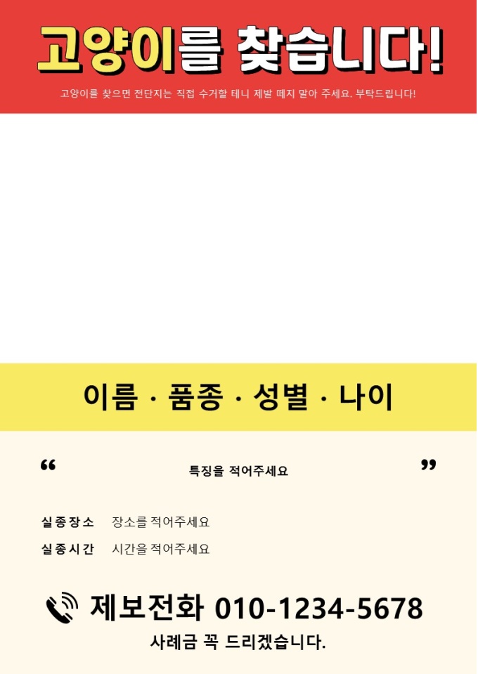 반려동물 실종 전단지 (강아지, 고양이, 빨간띠)