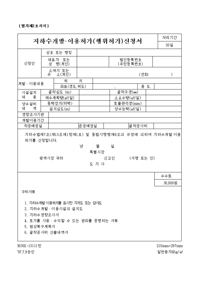 지하수개발, 이용허가(행위허가)신청서