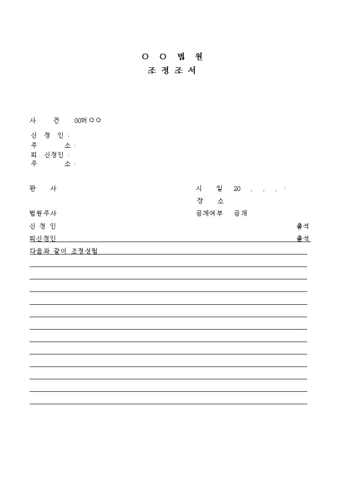 9,000원/월신청취지, 신청원인을 기록하는 조정조서입니다.
