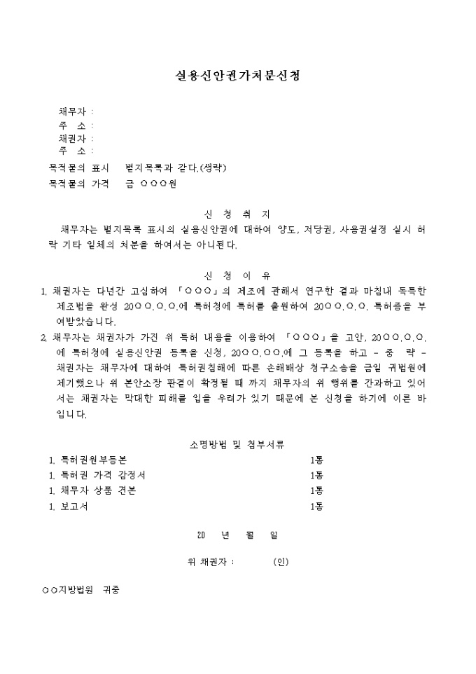 실용신안권처분금지가처분 신청서