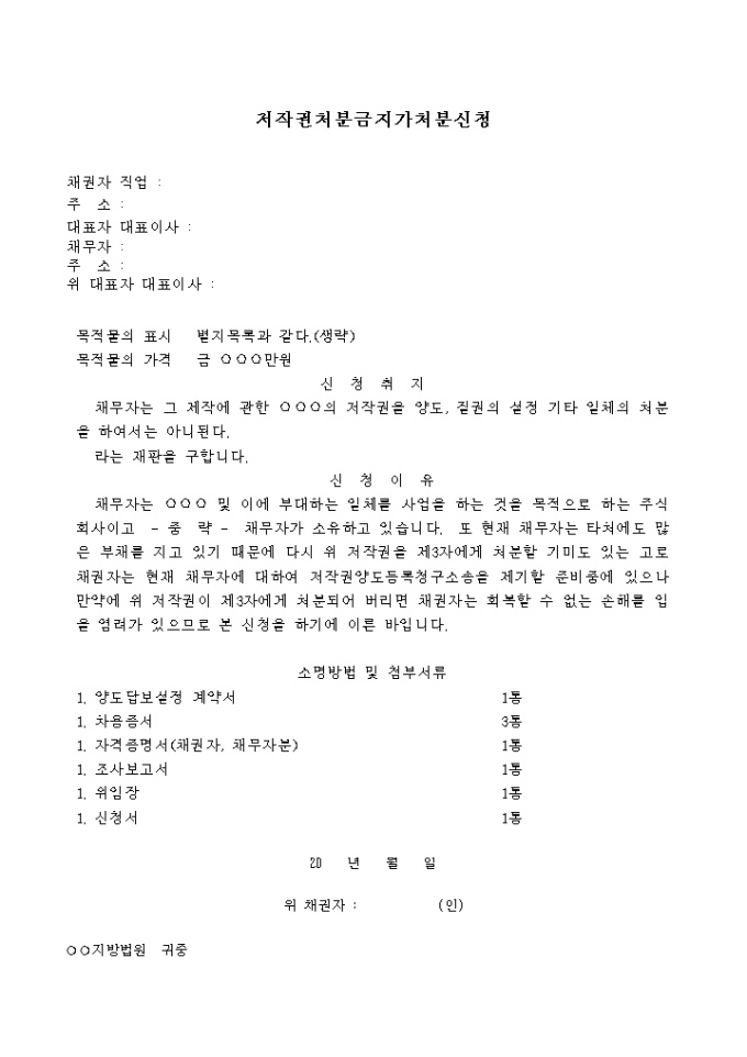저작권처분금지가처분 신청서