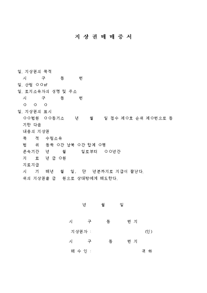 지상권 매매증서