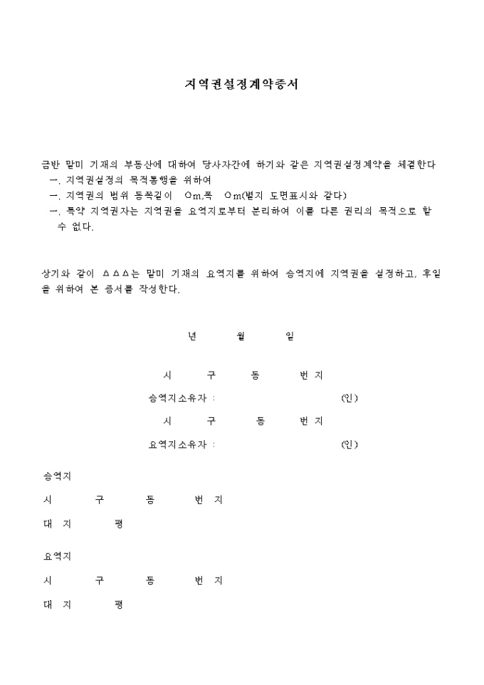 9,000원/월목적통행을 위한 지역권설정 계약 증서입니다.