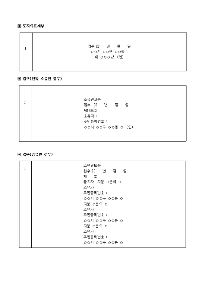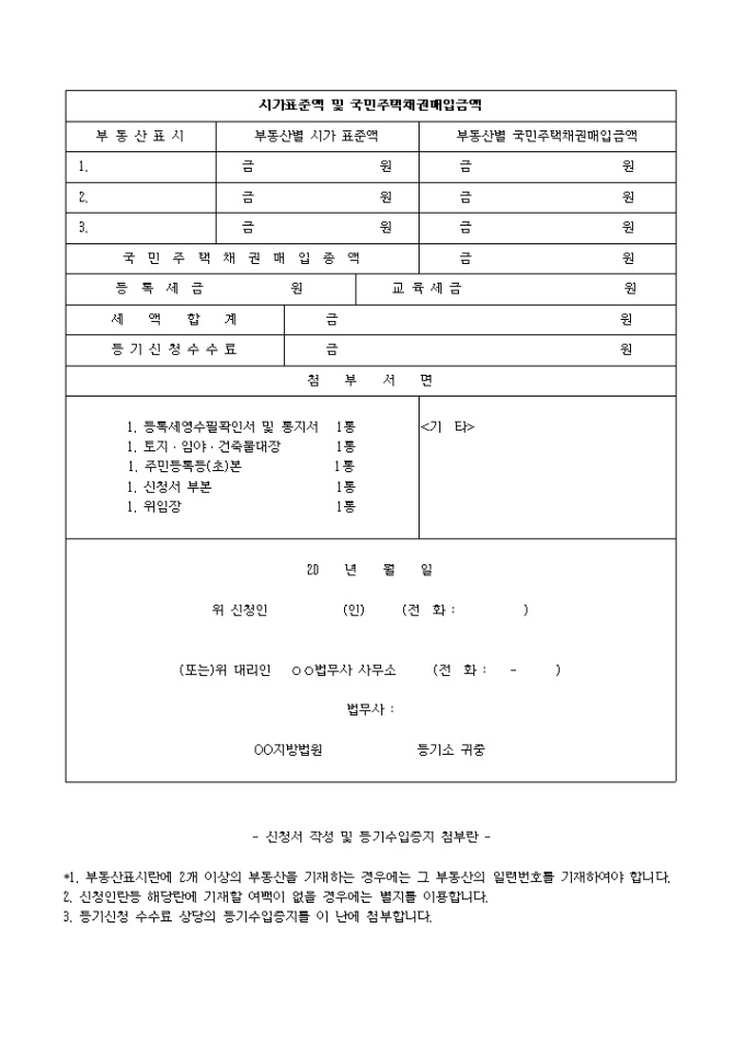 *1. 부동산표시란에 2개 이상의 부동산을 기재하는 경우에는 그 부동산의 일련번호를 기재하여야 합니다.