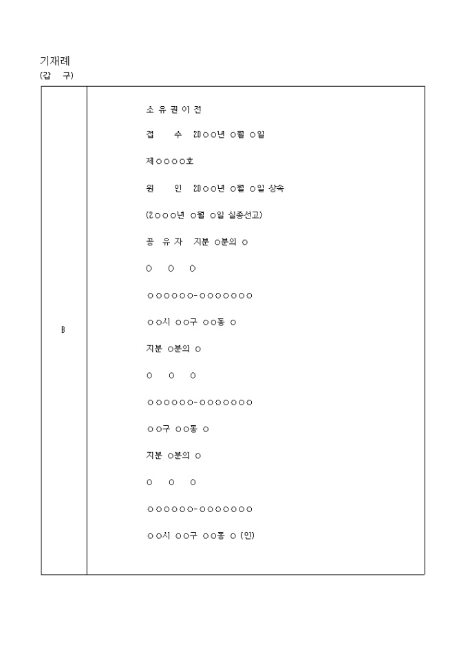 소유권이전등기실종으로인한상속 예제 양식입니다.