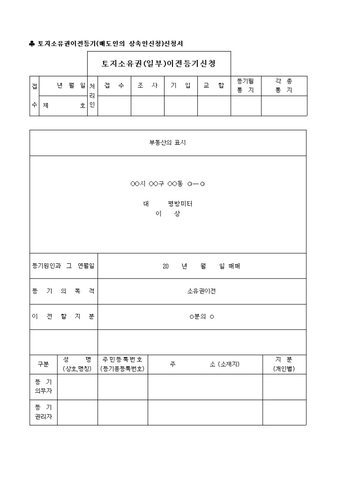 토지소유권이전등기(매도인의 상속인신청)신청서