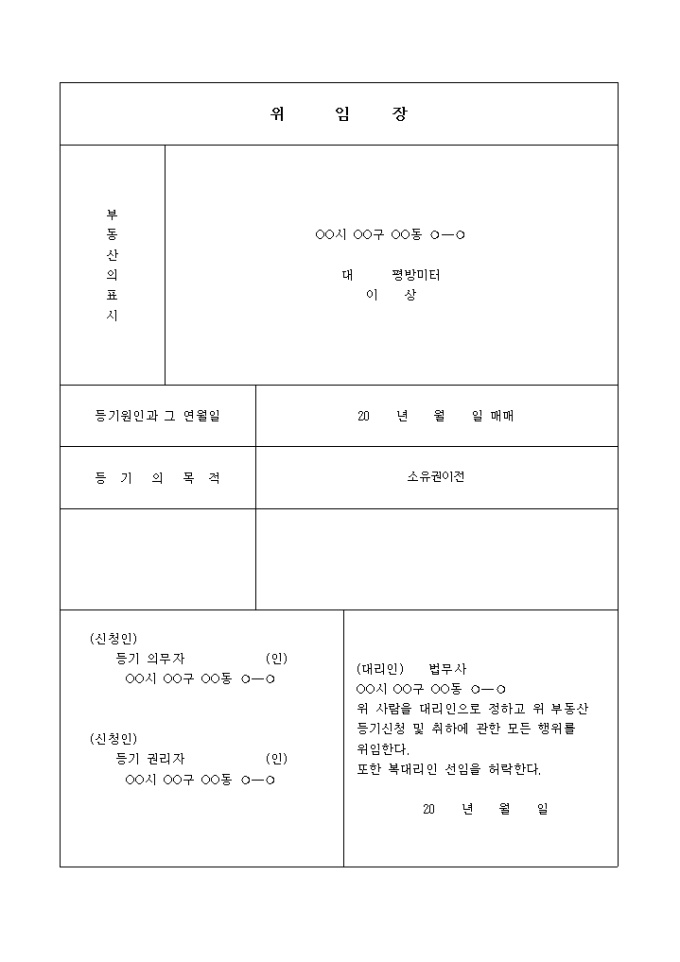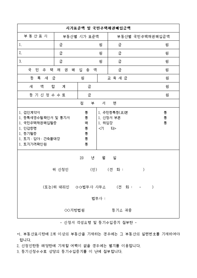 토지소유권이전등기(매도인의상속인신청)신청서 입니다. 등기원인과 그 연월일 : 20 년 월 일 매매 등 기 의 목 적 : 소유권이전 1. 부동산표시란에 2개 이상의 부동산을 기재하는 경우에는 그 부동산의 일련번호를 기재하여 야 합니다. 2. 신청인란등 해당란에 기재할 여백이 없을 경우에는 별지를 이용합니다. 3. 등기신청수수료 상당의 등기수입증지를 이 난에 첩부합니다.