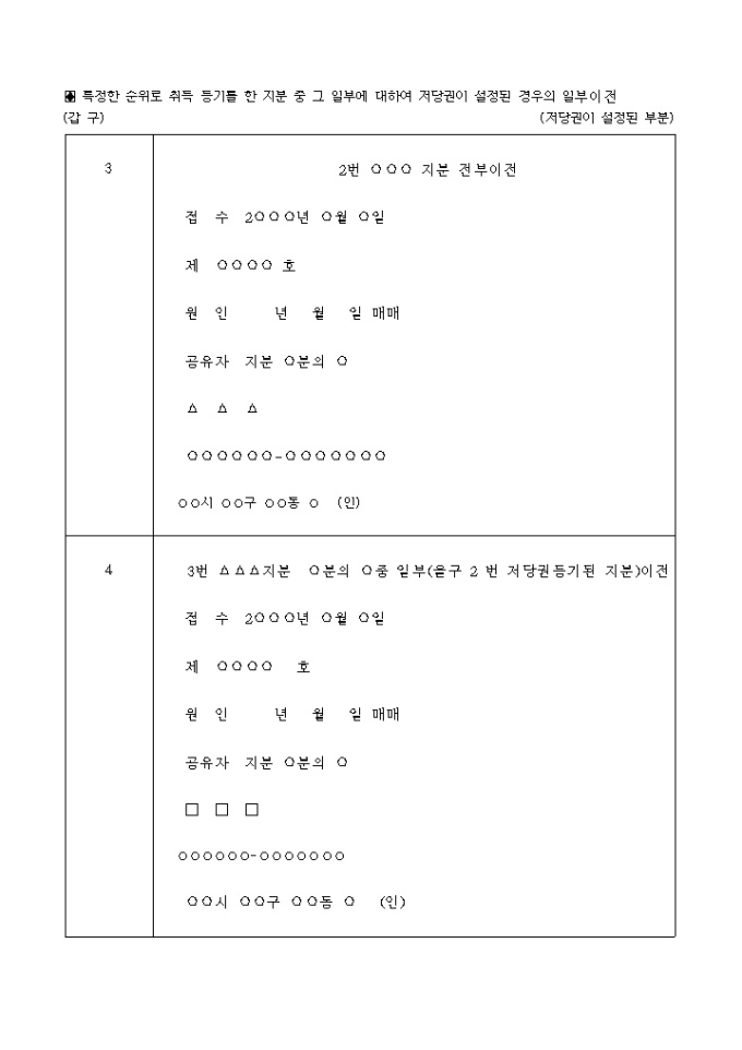 9,000원/월특정한순위로취득등기를한지분중그일부에대하여저당권이설정된경우의일부이전 입니다.