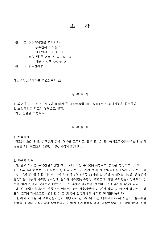 개발부담금부과처분의 취소 청구 소장